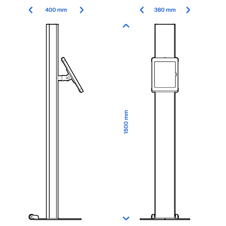 The T Totem 15 tablet display stand presents at an impressive 1.5m, offering ample branding space both above and below the tablet screen. With its robust graphic panels and optional wheels for mobility, it’s the perfect solution for self-service applications that require a strong call to action. It can be personalised with your own branding message for even greater impact.